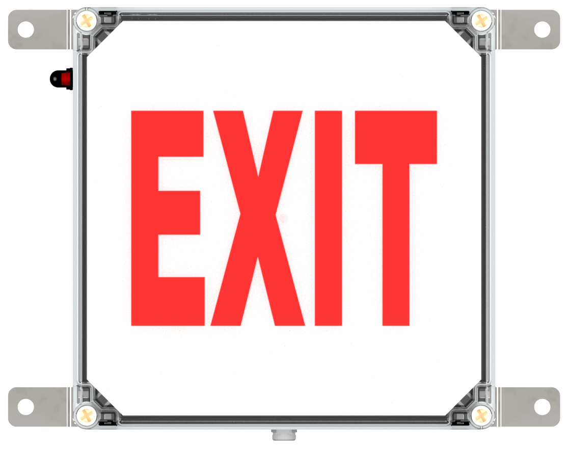 The EL5 Series (LED) Exit sign is designed for hose-down and wet location environments. The EL5 Series Exit sign ships completely assembled with a 3′ lead and Stainless Steel mounting feet and ready to install out of the box, making it a maintenance friendly product, ideally suited for food processing plants and most other wet applications.